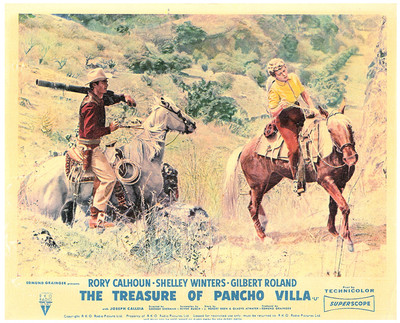 Treasure of Pancho Villa original lobby card Rory Calhoun Shelley Winters. Silver Screen Archives are pleased to be able to offer this authentic original lobby card measuring 8x10 inches. This lobby card is from Great Britain and was printed during the actual year the film was released in movie theaters. The lobby card (also known as Front of House/ FOH card in the UK) was created by the film studios to publicise the movie and was intended for display outside the movie theatre in special glass display boxes. THESE ARE NOT REPRODUCTIONS! You are looking at a truly original piece of cinema art, a genuine collector's item. We have a huge archive of over 250,000 original lobby cards, mostly from the 1930's to the 1980's. We will be releasing many more rare gems from our vast collection, which will include lobby cards, original photographs, movie stills, transparencies and slides. Listing and template services provided by ink Frog