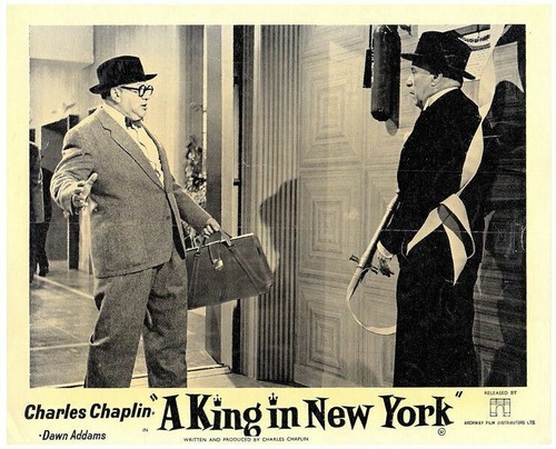 A KING IN NEW YORK ORIGINAL BRITISH LOBBY CARD CHARLES CHARLIE CHAPLIN MICHAEL CHAPLIN 1957 - GOOD CONDITION. Silver Screen Mementos are pleased to be able to offer this authentic original lobby card measuring 8x10 inches. This lobby card is from Great Britain and was printed during the actual year the film was released in movie theaters. The lobby card (also known as Front of House/ FOH card in the UK) was created by the film studios to publicise the movie and was intended for display outside the movie theatre in special glass display boxes. THESE ARE NOT REPRODUCTIONS! You are looking at a truly original piece of cinema art, a genuine collector's item. We have a huge archive of over 250,000 original lobby cards, mostly from the 1930's to the 1980's. We will be releasing many more rare gems from our vast collection, which will include lobby cards, original photographs, movie stills, transparencies and slides.