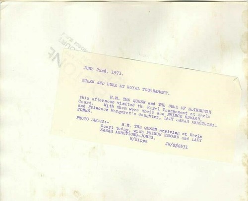H.M. Queen Elizabeth Prince Edward Lady Sarah Armstrong-Jones Original Photo 1971 VG/Near Mint This item is an ORIGINAL 8x10 photo from the historic archives of Silver Screen Mementos. This original photograph was made in the actual year the film, television show or event was produced. The movie studios produced publicity photographs for distribution to the press, photo agencies and publicity departments to advertise the film/tv show or event. Very often original photos have press release information on the reverse of the photo - movie credits, description of the scene, event and people involved. This is a historic piece of cinema art and is being offered from one collector to another, no rights given or implied. Silver Screen are gradually releasing thousands of Original Photographs, Transparencies, Negatives, Lobby Cards, Posters, Magazines and other memorabilia from our historic archive. Powered by Six Bit's e Commerce Solution Listing and template services provided by ink Frog