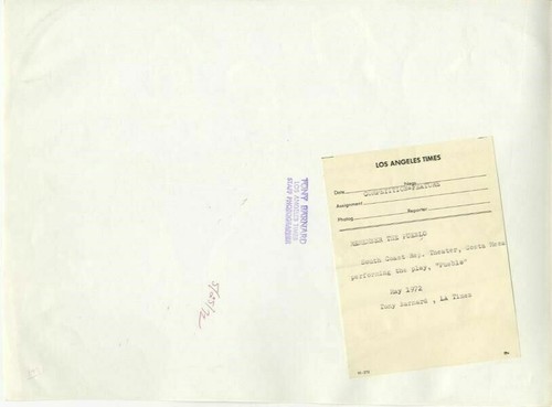 Remember The Pueblo South Coast Rep Theater Costa Mesa Origional 11x14 Photo '72 This item is a Vintage Original Oversized Silver Gelatin photograph from the historic archives of Silver Screen Mementos. This photograph also includes a protective clear rigid archival TOP LOADER photo holder. We have a huge collection of original vintage oversized photographs that were produced by the photographer or photo agency with most having the photographer/agency stamp on the back and many with snipe detailing information about the shoot or subject. These are extremely rare collectors items and will be shipped securely in protective archival top loader holder and strong packaging to ensure safe delivery. This is a historic piece of photographic art and is being offered from one collector to another, no rights given or implied. Silver Screen are gradually releasing thousands of Original Photographs, Transparencies, Negatives, Lobby Cards, Posters, Magazines and other memorabilia from our historic archive. Powered by Six Bit's e Commerce Solution Listing and template services provided by ink Frog