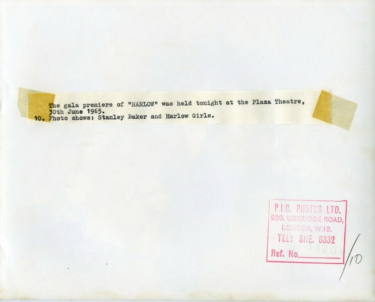 Stanley Baker and Jean Harlow girls at 1965 Movie Premiere Original 8x10 Photo VG/Near Mint This item is an ORIGINAL 8x10 photo from the historic archives of Silver Screen Mementos. This original photograph was made in the actual year the film, television show or event was produced. The movie studios produced publicity photographs for distribution to the press, photo agencies and publicity departments to advertise the film/tv show or event. Very often original photos have press release information on the reverse of the photo - movie credits, description of the scene, event and people involved. This is a historic piece of cinema art and is being offered from one collector to another, no rights given or implied. Silver Screen are gradually releasing thousands of Original Photographs, Transparencies, Negatives, Lobby Cards, Posters, Magazines and other memorabilia from our historic archive.