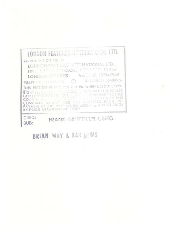 Queen Brian May Vim Fuego Bad News Playing Guitarst Original 7x9 Photo Agency Stamped Near Mint Condition This is an Original vintage photograph from the year of the concert, photo shoot or event measuring approximately 7x9 inches (18x23cm) unless otherwise stated. Many Original vintage photographs carry the agency or photographer stamp on the back. This is a rare collectors item being offered from one collector to another, no nights given or implied. Silver Screen are gradually releasing thousands of Original Photographs, Transparencies, Negatives, Lobby Cards, Posters, Magazines and other memorabilia from our historic archive.