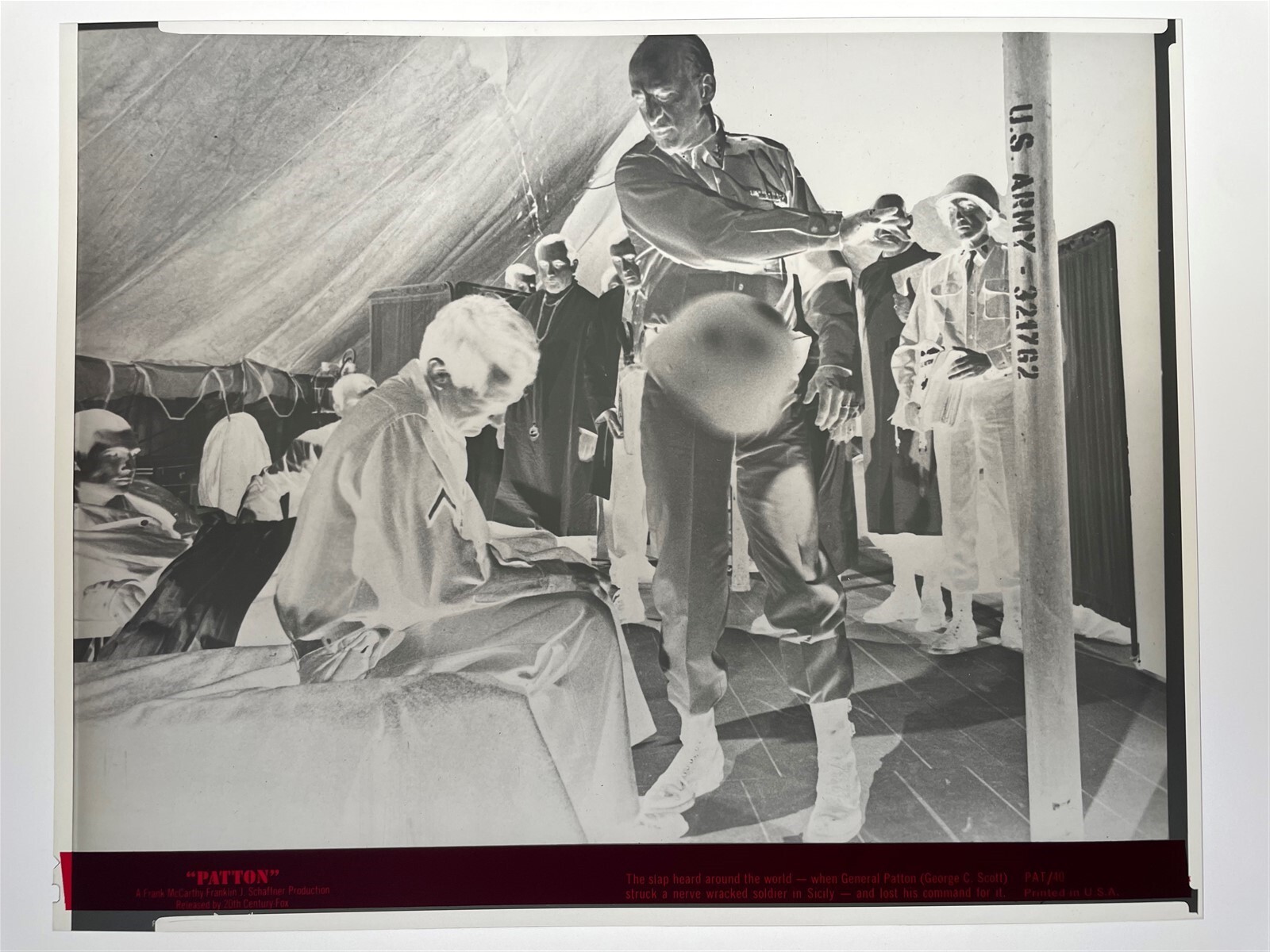 Patton George C. Scott slaps soldier Vintage 8x10 Studio Negative & Photo This is a vintage studio 8x10 inch black and white photographic negative from the historic Movie Star News archive. This is a real collector's item and would make superb quality photographs or prints. This vintage negative was derived from the original camera negative by studio and sent to media and publication outlets that needed the highest quality for magazine, newspaper or other printing purposes . This vintage negative also comes with an 8x10 photograph produced by Movie Star News directly from the negative, so superb quality. This negative has been stored in an acid free sleeve and will be included. Movie Star News was a legendary feature of New York City from 1938, when Irving Klaw opened the doors and sold thousands of high quality reproduction and original photos to the public. They received most of their negatives directly from the movie studios themselves, as they did not wish to store the negatives. This is a wonderful opportunity to buy a collectors item that has been a part of movie history. This would also be a great addition to any collection or image archive. This black and white photographic negative is in Excellent condition. This collector's item is being sold from one collector to another, no rights are given or implied. Silver Screen Mementos are gradually releasing from their vast archives thousands of original photographs, transparencies, negatives, slides, lobby cards and other movie or television memorabilia. from our historic archive.