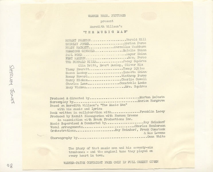 Shirley Jones the Music Man Gorgeous Glamour Pin up Original 8x10 Photo with Snipe 1962 VG/Near Mint Condition This item is an ORIGINAL 8x10 photo from the historic archives of Silver Screen Mementos. This original photograph was made in the actual year the film, television show or event was produced. The movie studios produced publicity photographs for distribution to the press, photo agencies and publicity departments to advertise the film/tv show or event. Very often original photos have press release information on the reverse of the photo - movie credits, description of the scene, event and people involved. This is a historic piece of cinema art and is being offered from one collector to another, no rights given or implied. Silver Screen are gradually releasing thousands of Original Photographs, Transparencies, Negatives, Lobby Cards, Posters, Magazines and other memorabilia from our historic archive.