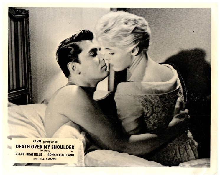 Death Over My Shoulder Original Lobby Card 1958 Keefe Brasselle Bonar Colleano Jill Adams Arlene De Marco VG Condition Silver Screen Mementos are pleased to be able to offer this authentic original Lobby Card measuring 8x10 inches. This lobby card is from Great Britain and was printed during the actual year the film was released in movie theaters. The lobby card (also known as Front of House/ FOH card in the UK) was created by the film studios to publicize the movie and was intended for display outside the movie theatre in special glass display boxes. These are NOT reproductions! You are looking at a truly original piece of cinema art, a genuine collector's item. We have a huge archive of over 250,000 original lobby cards, mostly from the 1930's to the 1980's. We will be releasing many more rare gems from our vast collection, which will include lobby cards, original photographs, movie stills, magazines, brochures negatives, transparencies, slides and other collectible items of movie memorabilia.