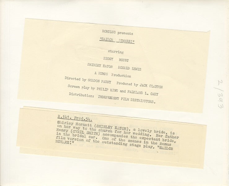 Sailor Beware! 1955 Shirley Eaton, Cyril Smith Wedding Scene Original 8x10 Photo Snipe VG/Near Mint Condition This item is an ORIGINAL 8x10 photo from the historic archives of Silver Screen Mementos. This original photograph was made in the actual year the film, television show or event was produced. The movie studios produced publicity photographs for distribution to the press, photo agencies and publicity departments to advertise the film/tv show or event. Very often original photos have press release information on the reverse of the photo - movie credits, description of the scene, event and people involved. This is a historic piece of cinema art and is being offered from one collector to another, no rights given or implied. Silver Screen are gradually releasing thousands of Original Photographs, Transparencies, Negatives, Lobby Cards, Posters, Magazines and other memorabilia from our historic archive.