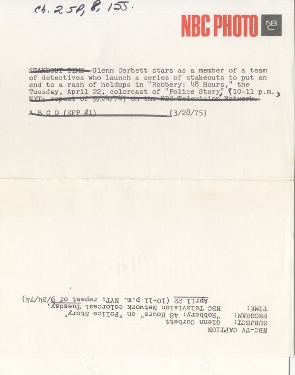 Police Story Robbery 48 Hours Glenn Corbett Original 7x9 Photo NBC Snipe 1975 Near Mint This item is an ORIGINAL 8x10 photo from the historic archives of Silver Screen Mementos. This original photograph was made in the actual year the film, television show or event was produced. The movie studios produced publicity photographs for distribution to the press, photo agencies and publicity departments to advertise the film/tv show or event. Very often original photos have press release information on the reverse of the photo - movie credits, description of the scene, event and people involved. This is a historic piece of cinema art and is being offered from one collector to another, no rights given or implied. Silver Screen are gradually releasing thousands of Original Photographs, Transparencies, Negatives, Lobby Cards, Posters, Magazines and other memorabilia from our historic archive.