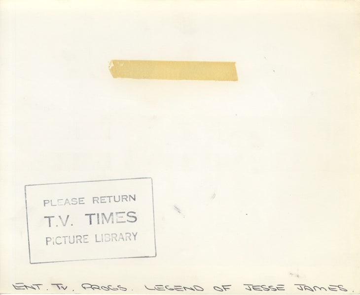 The Legend of Jesse James 1960's TV Western Original 8x10 Photo Christopher Jones, Allen Case Stamped Near Mint Condition This item is an ORIGINAL 8x10 photo from the historic archives of Silver Screen Mementos. This original photograph was made in the actual year the film, television show or event was produced. The movie studios produced publicity photographs for distribution to the press, photo agencies and publicity departments to advertise the film/tv show or event. Very often original photos have press release information on the reverse of the photo - movie credits, description of the scene, event and people involved. This is a historic piece of cinema art and is being offered from one collector to another, no rights given or implied. Silver Screen are gradually releasing thousands of Original Photographs, Transparencies, Negatives, Lobby Cards, Posters, Magazines and other memorabilia from our historic archive.
