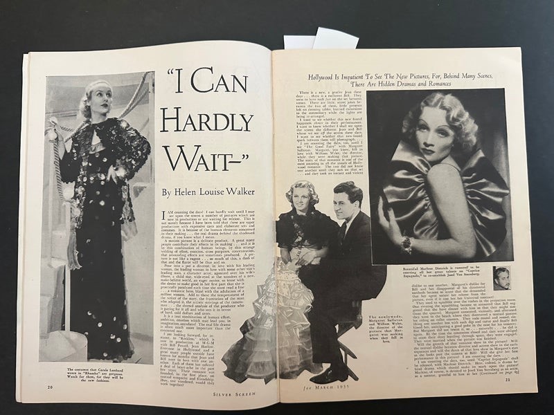 Silver Screen Vintage Magazine March 1935 Shirley Temple Cover complete issue feauturing Jean Harlow, Clark Gable, Marion Davies etc VG Condition A real Collectors’ item being released from our historic archives, this is a complete vintage magazine. Silver Screen Mementos are gradually releasing from their vast archives thousands of original photographs, transparencies, negatives, slides, lobby cards, magazines, brochures, press books and other movie or television memorabilia. This collector's item is being sold from one collector to another, no rights are given or implied. Silver Screen Mementos are gradually releasing from their vast archives thousands of original photographs, transparencies, negatives, slides, lobby cards and other movie or television memorabilia.