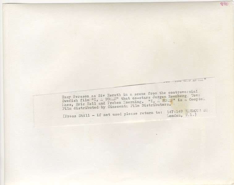 I, A Woman 1965 aka Jeg - en kvinde 1 Swedish Sexploitation Essy Persson Original 8x10 Photo with Snipe VG/Near Mint Condition This item is an ORIGINAL 8x10 photo from the historic archives of Silver Screen Mementos. This original photograph was made in the actual year the film, television show or event was produced. The movie studios produced publicity photographs for distribution to the press, photo agencies and publicity departments to advertise the film/tv show or event. Very often original photos have press release information on the reverse of the photo - movie credits, description of the scene, event and people involved. This is a historic piece of cinema art and is being offered from one collector to another, no rights given or implied. Silver Screen are gradually releasing thousands of Original Photographs, Transparencies, Negatives, Lobby Cards, Posters, Magazines and other memorabilia from our historic archive.