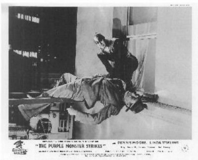 THE PURPLE MONSTER STRIKES ORIGINAL BRITISH LOBBY CARD. MINT CONDITION. 8X10 INCHES. DENNIS MOORE, LINDA STIRLING. 1945: Silver Screen Mementos are pleased to be able to offer this authentic original lobby card measuring 8x10 inches. This lobby card is from Great Britain and was printed during the actual year the film was released in movie theaters. The lobby card (also known as Front of House/ FOH card in the UK) was created by the film studios to publicise the movie and was intended for display outside the movie theatre in special glass display boxes. THESE ARE NOT REPRODUCTIONS! You are looking at a truly original piece of cinema art, a genuine collector's item. We have a huge archive of over 250,000 original lobby cards, mostly from the 1930's to the 1980's. We will be releasing many more rare gems from our vast collection, which will include lobby cards, original photographs, movie stills, transparencies and slides.