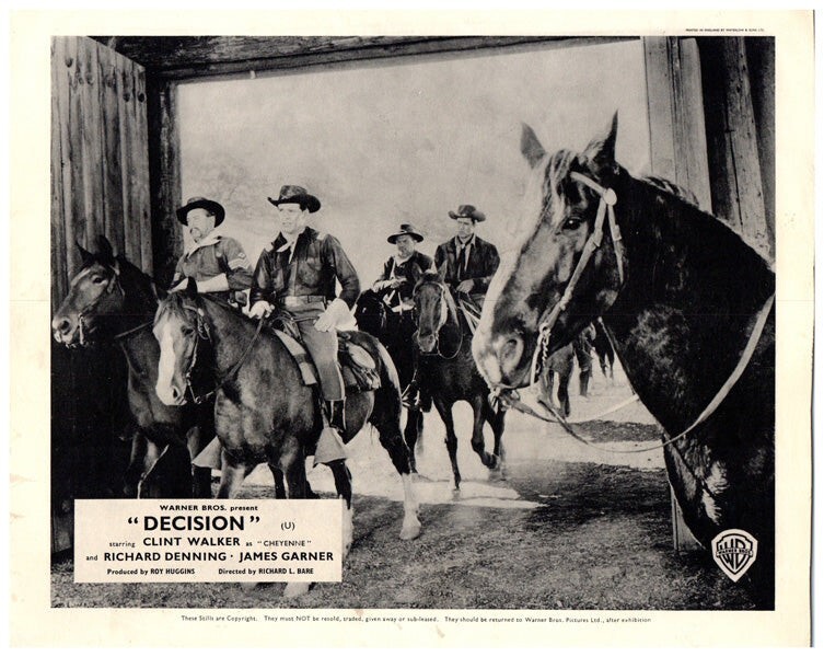 THE VIRGINIAN FINAL HOUR TV DOUG MCCLURE GARY CLARKE RARE LOBBY CARD BRITISH THEATRICAL RELEASE OF 2 1962 EPISODES FROM THE CLASSIC TV WESTERN VG CONDITION. Silver Screen Archives are pleased to be able to offer this authentic original lobby card measuring 8x10 inches. This lobby card is from Great Britain and was printed during the actual year the film was released in movie theaters. The lobby card (also known as Front of House/ FOH card in the UK) was created by the film studios to publicise the movie and was intended for display outside the movie theatre in special glass display boxes. THESE ARE NOT REPRODUCTIONS! You are looking at a truly original piece of cinema art, a genuine collector's item. We have a huge archive of over 250,000 original lobby cards, mostly from the 1930's to the 1980's. We will be releasing many more rare gems from our vast collection, which will include lobby cards, original photographs, movie stills, transparencies and slides. Listing and template services provided by inkFrog