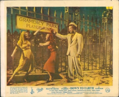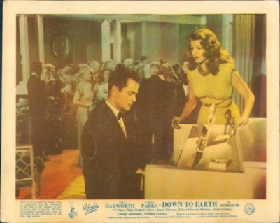 DOWN TO EARTH RITA HAYWORTH LARRY PARKS 1947 ORIGINAL LOBBY CARD RARE BRITISH IN GOOD CONDITION. Silver Screen Mementos are pleased to be able to offer this authentic original lobby card measuring 8x10 inches. This lobby card is from Great Britain and was printed during the actual year the film was released in movie theaters. The lobby card (also known as Front of House/ FOH card in the UK) was created by the film studios to publicise the movie and was intended for display outside the movie theatre in special glass display boxes. THESE ARE NOT REPRODUCTIONS! You are looking at a truly original piece of cinema art, a genuine collector's item. We have a huge archive of over 250,000 original lobby cards, mostly from the 1930's to the 1980's. We will be releasing many more rare gems from our vast collection, which will include lobby cards, original photographs, movie stills, transparencies and slides.