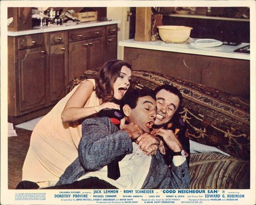 GOOD NEIGHBOR SAM JACK LEMMON ROMY SCHNEIDER LOBBY CARD ORIGINAL BRITISH STARRING JACK LEMMON, ROMY SCHNEIDER, DOROTHY PROVINE, MIKE CONNORS, EDWARD ANDREWS AND EDWARD G. ROBINSON. VG CONDITION. Silver Screen Mementos are pleased to be able to offer this authentic original lobby card measuring 8x10 inches. This lobby card is from Great Britain and was printed during the actual year the film was released in movie theaters. The lobby card (also known as Front of House/ FOH card in the UK) was created by the film studios to publicise the movie and was intended for display outside the movie theatre in special glass display boxes. THESE ARE NOT REPRODUCTIONS! You are looking at a truly original piece of cinema art, a genuine collector's item. We have a huge archive of over 250,000 original lobby cards, mostly from the 1930's to the 1980's. We will be releasing many more rare gems from our vast collection, which will include lobby cards, original photographs, movie stills, transparencies and slides.