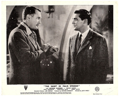 THE SAINT IN PALM SPRINGS ORIGINAL BRITISH LOBBY CARD GEORGE SANDERS 1941 VERY RARE IN GOOD CONDITION. Silver Screen Archives are pleased to be able to offer this authentic original lobby card measuring 8x10 inches. This lobby card is from Great Britain and was printed during the actual year the film was released in movie theaters. The lobby card (also known as Front of House/ FOH card in the UK) was created by the film studios to publicise the movie and was intended for display outside the movie theatre in special glass display boxes. THESE ARE NOT REPRODUCTIONS! You are looking at a truly original piece of cinema art, a genuine collector's item. We have a huge archive of over 250,000 original lobby cards, mostly from the 1930's to the 1980's. We will be releasing many more rare gems from our vast collection, which will include lobby cards, original photographs, movie stills, transparencies and slides. Listing and template services provided by inkFrog