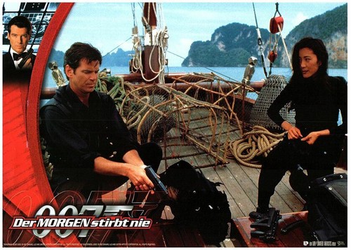 TOMORROW NEVER DIES ORIGINAL LOBBY CARD JAMES BOND PIERCE BROSNAN GERMAN 9X11 INCH APPROX. NEAR MINT. Silver Screen Mementos are pleased to be able to offer this authentic original lobby card measuring 8x10 inches. This lobby card is from Great Britain and was printed during the actual year the film was released in movie theaters. The lobby card (also known as Front of House/ FOH card in the UK) was created by the film studios to publicise the movie and was intended for display outside the movie theatre in special glass display boxes. THESE ARE NOT REPRODUCTIONS! You are looking at a truly original piece of cinema art, a genuine collector's item. We have a huge archive of over 250,000 original lobby cards, mostly from the 1930's to the 1980's. We will be releasing many more rare gems from our vast collection, which will include lobby cards, original photographs, movie stills, transparencies and slides.