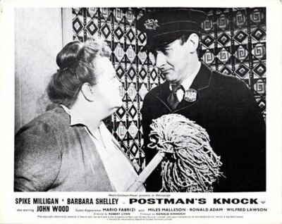 POSTMAN'S KNOCK ORIGINAL LOBBY CARD BRITISH COMEDY SPIKE MILLIGAN 1962 - NEAR MINT. Silver Screen Archives are pleased to be able to offer this authentic original lobby card measuring 8x10 inches. This lobby card is from Great Britain and was printed during the actual year the film was released in movie theaters. The lobby card (also known as Front of House/ FOH card in the UK) was created by the film studios to publicise the movie and was intended for display outside the movie theatre in special glass display boxes. THESE ARE NOT REPRODUCTIONS! You are looking at a truly original piece of cinema art, a genuine collector's item. We have a huge archive of over 250,000 original lobby cards, mostly from the 1930's to the 1980's. We will be releasing many more rare gems from our vast collection, which will include lobby cards, original photographs, movie stills, transparencies and slides. Listing and template services provided by inkFrog