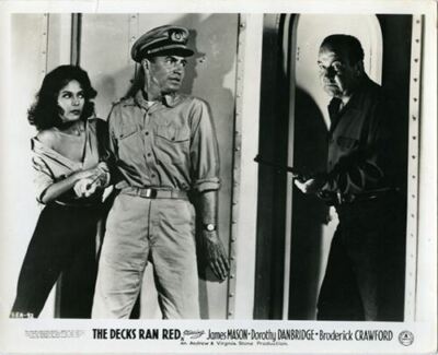 THE DECKS RAN RED ORIGINAL LOBBY CARD DOROTHY DANDRIDGE JAMES MASON BRODERICK CRAWFORD VG CONDITION. Silver Screen Archives are pleased to be able to offer this authentic original lobby card measuring 8x10 inches. This lobby card is from Great Britain and was printed during the actual year the film was released in movie theaters. The lobby card (also known as Front of House/ FOH card in the UK) was created by the film studios to publicise the movie and was intended for display outside the movie theatre in special glass display boxes. THESE ARE NOT REPRODUCTIONS! You are looking at a truly original piece of cinema art, a genuine collector's item. We have a huge archive of over 250,000 original lobby cards, mostly from the 1930's to the 1980's. We will be releasing many more rare gems from our vast collection, which will include lobby cards, original photographs, movie stills, transparencies and slides. Listing and template services provided by inkFrog