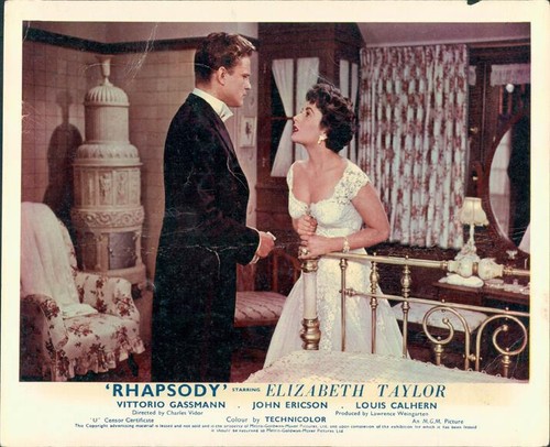 RHAPSODY - ELIZABETH TAYLOR VITTORIO GASSMAN LOBBY CARD FAIR CONDITION. Silver Screen Archives are pleased to be able to offer this authentic original lobby card measuring 8x10 inches. This lobby card is from Great Britain and was printed during the actual year the film was released in movie theaters. The lobby card (also known as Front of House/ FOH card in the UK) was created by the film studios to publicise the movie and was intended for display outside the movie theatre in special glass display boxes. THESE ARE NOT REPRODUCTIONS! You are looking at a truly original piece of cinema art, a genuine collector's item. We have a huge archive of over 250,000 original lobby cards, mostly from the 1930's to the 1980's. We will be releasing many more rare gems from our vast collection, which will include lobby cards, original photographs, movie stills, transparencies and slides. Listing and template services provided by inkFrog