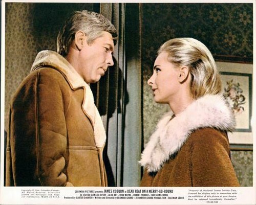 DEAD HEAT ON A MERRY-GO-ROUND ORIGINAL LOBBY CARD JAMES COBURN CAMILLA SPARV NEAR MINT CONDITION. Silver Screen Archives are pleased to be able to offer this authentic original lobby card measuring 8x10 inches. This lobby card is from USA and was printed during the actual year the film was released in movie theaters. The lobby card (also known as Front of House/ FOH card in the UK) was created by the film studios to publicise the movie and was intended for display outside the movie theatre in special glass display boxes. THESE ARE NOT REPRODUCTIONS! You are looking at a truly original piece of cinema art, a genuine collector's item. We have a huge archive of over 250,000 original lobby cards, mostly from the 1930's to the 1980's. We will be releasing many more rare gems from our vast collection, which will include lobby cards, original photographs, movie stills, transparencies and slides. Listing and template services provided by inkFrog