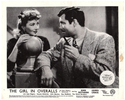 GIRL IN OVERALLS Original lobby Card Ann Sothern James Craig Swing Shift Maisie 1943 VG Condition. Silver Screen Archives are pleased to be able to offer this authentic original lobby card measuring 8x10 inches. This lobby card is from Great Britain and was printed during the actual year the film was released in movie theaters. The lobby card (also known as Front of House/ FOH card in the UK) was created by the film studios to publicise the movie and was intended for display outside the movie theatre in special glass display boxes. THESE ARE NOT REPRODUCTIONS! You are looking at a truly original piece of cinema art, a genuine collector's item. We have a huge archive of over 250,000 original lobby cards, mostly from the 1930's to the 1980's. We will be releasing many more rare gems from our vast collection, which will include lobby cards, original photographs, movie stills, transparencies and slides. Listing and template services provided by inkFrog