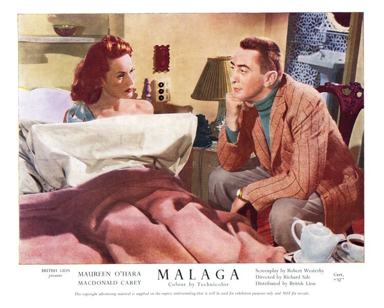 Malaga Original Lobby Card Maureen O'Hara MacDonald Carey 1954 Good Condition.Silver Screen Archives are pleased to be able to offer this authentic original lobby card measuring 8x10 inches. This lobby card is from Great Britain and was printed during the actual year the film was released in movie theaters. The lobby card (also known as Front of House/ FOH card in the UK) was created by the film studios to publicise the movie and was intended for display outside the movie theatre in special glass display boxes. THESE ARE NOT REPRODUCTIONS! You are looking at a truly original piece of cinema art, a genuine collector's item. We have a huge archive of over 250,000 original lobby cards, mostly from the 1930's to the 1980's. We will be releasing many more rare gems from our vast collection, which will include lobby cards, original photographs, movie stills, transparencies and slides. Listing and template services provided by inkFrog