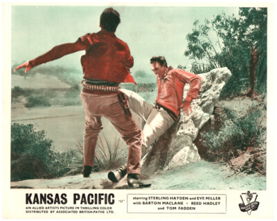 Kansas Pacific Original Lobby Card 1953 Western Sterling Hayden Barton MacLane Reed Hadley Near Mint Condition.Silver Screen Archives are pleased to be able to offer this authentic original lobby card measuring 8x10 inches. This lobby card is from Great Britain and was printed during the actual year the film was released in movie theaters. The lobby card (also known as Front of House/ FOH card in the UK) was created by the film studios to publicise the movie and was intended for display outside the movie theatre in special glass display boxes. THESE ARE NOT REPRODUCTIONS! You are looking at a truly original piece of cinema art, a genuine collector's item. We have a huge archive of over 250,000 original lobby cards, mostly from the 1930's to the 1980's. We will be releasing many more rare gems from our vast collection, which will include lobby cards, original photographs, movie stills, transparencies and slides. Listing and template services provided by inkFrog