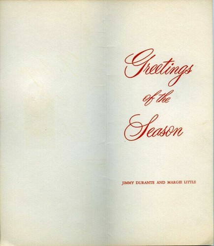 Jimmy Durante Margie Little Original 4x9 Vintage Family Christmas Card . A very unique collectors item measuring approx 4x9 inches. A real Collectors item being released from our historic archives. Silver Screen Archives are gradually releasing from their vast archives thousands of original photographs, transparencies, negatives, slides, lobby cards and other movie or television memorabilia. Listing and template services provided by inkFrog