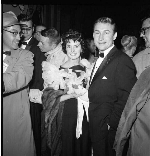 Donna Reed Arthur Kennedy Candid 2.25 x 2.25 Original Camera Photo Negative - This is an original photographers B/W Original 2.25 x 2.25 Camera Negative from our historic archive. This is a unique one of a kind original collectors item from the Golden Age of Hollywood taken by the photographer at an event 1940's/1950's. This image really captures the spirit of that age in Hollywood when the stars had fun and trusted photographers were there on hand to capture those 'magic moments' in history. This is a real collectors item and would make superb quality photographs or prints. This would also be a great addition to any collection or image archive. The transparency is in excellent condition. This collectors item is being sold from one collector to another, no rights are given or implied. Silver Screen Archives are gradually releasing from their vast archives thousands of original photographs, transparencies, negatives, slides, lobby cards and other movie or television memorabilia. Listing and template services provided by inkFrog
