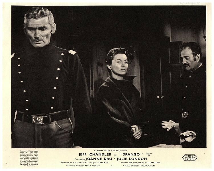 Drango Original British Lobby Card Joanne Dru Jeff Chandler 1957 western VG/Near Mint Silver Screen Archives are pleased to be able to offer this authentic original Lobby Card measuring 8x10 inches. This lobby card is from Great Britain and was printed during the actual year the film was released in movie theaters. The lobby card (also known as Front of House/ FOH card in the UK) was created by the film studios to publicize the movie and was intended for display outside the movie theatre in special glass display boxes. These are NOT reproductions! You are looking at a truly original piece of cinema art, a genuine collector's item. We have a huge archive of over 250,000 original lobby cards, mostly from the 1930's to the 1980's. We will be releasing many more rare gems from our vast collection, which will include lobby cards, original photographs, movie stills, magazines, brochures negatives, transparencies, slides and other collectible items of movie memorabilia. Powered by SixBit's eCommerce Solution Listing and template services provided by inkFrog