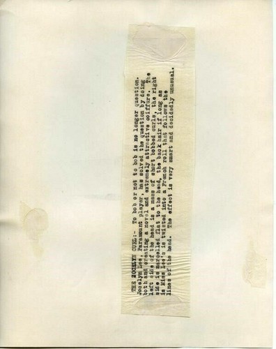 Jocelyn Lee Vintage Hairstyle Fashion Silent Era Original Photograph with snipe VG Condition This is an Original Photograph measuring approx 8x10 inches. Silver Screen Archives has recently acquired another large archive of amazing and extremely rare original photographs from the Silent era through the early 'Talkies' and beyond. We will gradually be releasing some of these rare treasures, including some wonderful Original photographs of Louise Brooks, Fay Wray, Clara Bow, Charles Chaplin, Jean Arthur, Gary Cooper, Albert Einstein, Jean Harlow and Carole Lombard. This is a historic piece of cinema art and is being offered from one collector to another, no rights given or implied. Silver Screen Archives are gradually releasing thousands of Original Photographs, Transparencies, Slides, Lobby Cards, Movie Posters, Magazines and other entertainment memorabilia from its historic archives. Powered by SixBit's eCommerce Solution Listing and template services provided by inkFrog