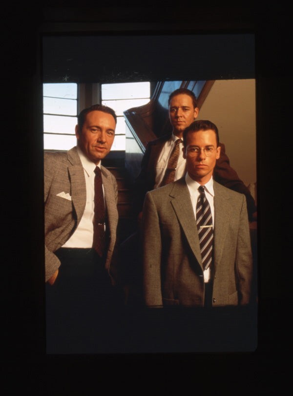 L.A. Confidential Russell Crowe Guy Pearce Kevin Spacey James Cromwell Original 35mm Transparency This is an Original studio or photographer's 35 mm color slide transparency from our historic archive. This is a real collector's item and would make superb quality photographs or prints. This would also be a great addition to any collection or image archive. This original negative color slide transparency is in Excellent condition. This collector's item is being sold from one collector to another, no rights are given or implied. Silver Screen Archives are gradually releasing from their vast archives thousands of original photographs, transparencies, negatives, slides, lobby cards and other movie or television memorabilia. Powered by SixBit's eCommerce Solution Listing and template services provided by inkFrog