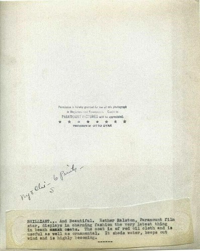 Esther Ralston Bathing Beauty Glamour Pin Up Leggy Original by Legendary Photographer Otto Dyar 8x10 Photograph, extremely rare with Paramount stamp and original snipe in VG+ Condition This is an Original Photograph measuring approx 8x10 inches. Silver Screen Archives has recently acquired another large archive of amazing and extremely rare original photographs from the Silent era through the early 'Talkies' and beyond. We will gradually be releasing some of these rare treasures, including some wonderful Original photographs of Louise Brooks, Fay Wray, Clara Bow, Charles Chaplin, Jean Arthur, Gary Cooper, Albert Einstein, Jean Harlow and Carole Lombard. This is a historic piece of cinema art and is being offered from one collector to another, no rights given or implied. Silver Screen Archives are gradually releasing thousands of Original Photographs, Transparencies, Slides, Lobby Cards, Movie Posters, Magazines and other entertainment memorabilia from its historic archives. Powered by SixBit's eCommerce Solution Listing and template services provided by inkFrog