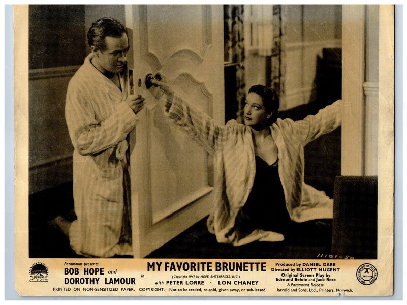 Farewell My Lovely Murder My Sweet Original Lobby Card 1944 Dick Powell as Philip Marlowe in classic Film Noir Good Condition (no pin holes, tears or paper loss, some creases) Silver Screen Archives are pleased to be able to offer this authentic original Lobby Card measuring 8x10 inches. This lobby card is from Great Britain and was printed during the actual year the film was released in movie theaters. The lobby card (also known as Front of House/ FOH card in the UK) was created by the film studios to publicize the movie and was intended for display outside the movie theatre in special glass display boxes. These are NOT reproductions! You are looking at a truly original piece of cinema art, a genuine collector's item. We have a huge archive of over 250,000 original lobby cards, mostly from the 1930's to the 1980's. We will be releasing many more rare gems from our vast collection, which will include lobby cards, original photographs, movie stills, magazines, brochures negatives, transparencies, slides and other collectible items of movie memorabilia. Powered by SixBit's eCommerce Solution Listing and template services provided by inkFrog