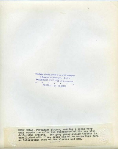 Mary Brian Pre Code Flapper Girl Glamour Pin Up George Hommel Stamped Original 8x10 Photograph with snipe, wonderful image in Very Fine Condition This is an Original Photograph measuring approx 8x10 inches. Silver Screen Mementos has recently acquired another large archive of amazing and extremely rare original photographs from the Silent era through the early 'Talkies' and beyond. We will gradually be releasing some of these rare treasures, including some wonderful Original photographs of Louise Brooks, Fay Wray, Clara Bow, Charles Chaplin, Jean Arthur, Gary Cooper, Albert Einstein, Jean Harlow and Carole Lombard. This is a historic piece of cinema art and is being offered from one collector to another, no rights given or implied. Silver Screen Mementos are gradually releasing thousands of Original Photographs, Transparencies, Slides, Lobby Cards, Movie Posters, Magazines and other entertainment memorabilia from its historic archives. Powered by SixBit's eCommerce Solution Listing and template services provided by inkFrog