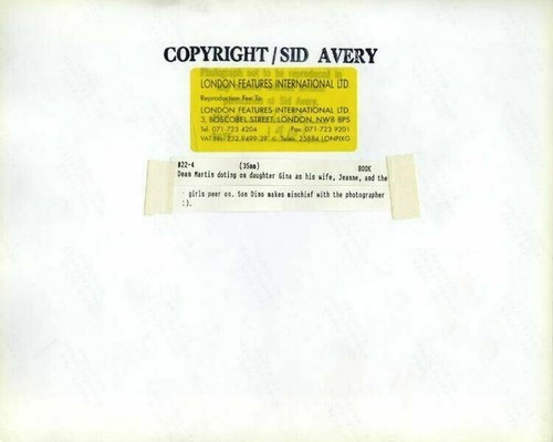 Dean Martin and family at home rare Vintage Photographer Stamped 8x10 Print Near Mint This item is a Vintage 8x10 Inch (20 x 25 cm approx) Color photograph from the historic archives of Silver Screen Mementos. This vintage photograph was produced directly from the original transparency or slide on real photographic paper around the year of release or up to the 1990's. This is not a digital print. This is being offered from one collector to another, no rights given or implied. Silver Screen are gradually releasing thousands of Original Photographs, Transparencies, Negatives, Lobby Cards, Posters, Magazines and other memorabilia from our historic archive. Powered by SixBit's eCommerce Solution Listing and template services provided by inkFrog