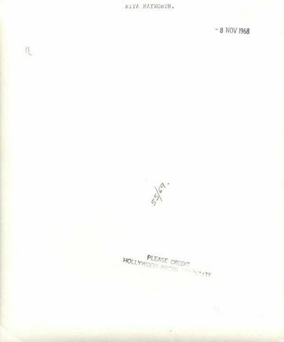Rita Hayworth Vintage Portrait holding drink Original Stamped 8x10 Photo VG Condition Includes free TOP LOADER Protective archival photo holder. This item is an ORIGINAL 8x10 photo from the historic archives of Silver Screen Mementos. This photo also includes a protective clear rigid archival TOP LOADER photo holder. This original photograph was made in the actual year the film, television show or event was produced. The movie studios produced publicity photographs for distribution to the press, photo agencies and publicity departments to advertise the film/tv show or event. Very often original photos have press release information on the reverse of the photo - movie credits, description of the scene, event and people involved. This is a historic piece of cinema art and is being offered from one collector to another, no rights given or implied. Silver Screen are gradually releasing thousands of Original Photographs, Transparencies, Negatives, Lobby Cards, Posters, Magazines and other memorabilia from our historic archive. Powered by SixBit's eCommerce Solution Listing and template services provided by inkFrog