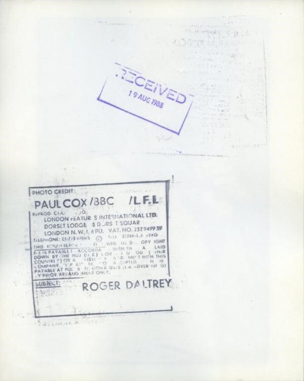 The Who Roger Daltrey 1988 Concert Vintage Stamped Photo Agency 8x10 VG/Near Mint This is a vintage photograph that was printed by the photographer or photo agency directly from the original negative, measuring approximately 8x10 inches (20x25 cm) unless otherwise stated. Many of these vintage photographs carry the agency or photographer stamp on the back. This is a rare collectors item being offered from one collector to another, no nights given or implied. Silver Screen are gradually releasing thousands of Original Photographs, Transparencies, Negatives, Lobby Cards, Posters, Magazines and other memorabilia from our historic archive.