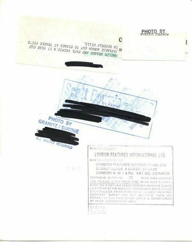 Marlon Brando Candid Vintage 1983 Stamped Original Press Still 8x10 Photo with snipe VG/Near Mint This item is an ORIGINAL 8x10 photo from the historic archives of Silver Screen Mementos. This original photograph was made in the actual year the film, television show or event was produced. The movie studios produced publicity photographs for distribution to the press, photo agencies and publicity departments to advertise the film/tv show or event. Very often original photos have press release information on the reverse of the photo - movie credits, description of the scene, event and people involved. This is a historic piece of cinema art and is being offered from one collector to another, no rights given or implied. Silver Screen are gradually releasing thousands of Original Photographs, Transparencies, Negatives, Lobby Cards, Posters, Magazines and other memorabilia from our historic archive. Powered by SixBit's eCommerce Solution Listing and template services provided by inkFrog