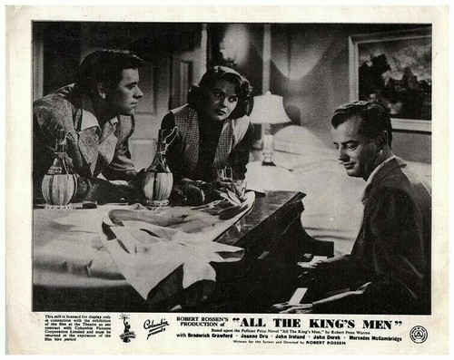 All the Kings Men Original Lobby Card Broderick Crawford Joanne Dru John Ireland John Derek Mercedes McCambridge 1949 VG Condition Silver Screen Mementos are pleased to be able to offer this authentic original Lobby Card measuring 8x10 inches. This lobby card is from Great Britain and was printed during the actual year the film was released in movie theaters. The lobby card (also known as Front of House/ FOH card in the UK) was created by the film studios to publicize the movie and was intended for display outside the movie theatre in special glass display boxes. These are NOT reproductions! You are looking at a truly original piece of cinema art, a genuine collector's item. We have a huge archive of over 250,000 original lobby cards, mostly from the 1930's to the 1980's. We will be releasing many more rare gems from our vast collection, which will include lobby cards, original photographs, movie stills, magazines, brochures negatives, transparencies, slides and other collectible items of movie memorabilia.