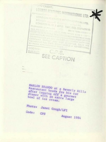 Marlon Brando Candid Beverly Hills 1984 Vintage Stamped Press Still 6x8 Photo This is an original press still photograph measuring approx 6x8 inches (15x20cm) and stamped on the back by the photographer or photo agency. This vintage photo was produced the year of the concert, movie, tv show or event. This is a historic piece is is being offered from one collector to another, no rights given or implied. Silver Screen are gradually releasing thousands of Original Photographs, Transparencies, Negatives, Lobby Cards, Posters, Magazines and other memorabilia from our historic archive. Powered by SixBit's eCommerce Solution Listing and template services provided by inkFrog