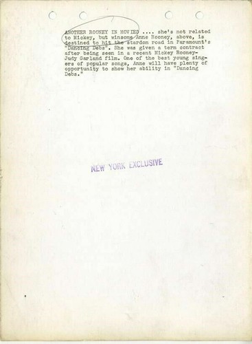 Anne Rooney 1942 Paramount Studio Glamour Double Weight Key Book Original Photo Very Fine Condition This item is an ORIGINAL 8x10 photo from the historic archives of Silver Screen Mementos. This original photograph was made in the actual year the film, television show or event was produced. The movie studios produced publicity photographs for distribution to the press, photo agencies and publicity departments to advertise the film/tv show or event. Very often original photos have press release information on the reverse of the photo - movie credits, description of the scene, event and people involved. This is a historic piece of cinema art and is being offered from one collector to another, no rights given or implied. Silver Screen are gradually releasing thousands of Original Photographs, Transparencies, Negatives, Lobby Cards, Posters, Magazines and other memorabilia from our historic archive. Powered by SixBit's eCommerce Solution Listing and template services provided by inkFrog