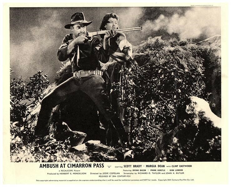 Ambush at Cimarron Pass Original Lobby Card Scott Brady Margia Dean western 1958 VG/Near Mint Silver Screen Archives are pleased to be able to offer this authentic original Lobby Card measuring 8x10 inches. This lobby card is from Great Britain and was printed during the actual year the film was released in movie theaters. The lobby card (also known as Front of House/ FOH card in the UK) was created by the film studios to publicize the movie and was intended for display outside the movie theatre in special glass display boxes. These are NOT reproductions! You are looking at a truly original piece of cinema art, a genuine collector's item. We have a huge archive of over 250,000 original lobby cards, mostly from the 1930's to the 1980's. We will be releasing many more rare gems from our vast collection, which will include lobby cards, original photographs, movie stills, magazines, brochures negatives, transparencies, slides and other collectible items of movie memorabilia. Powered by SixBit's eCommerce Solution Listing and template services provided by inkFrog