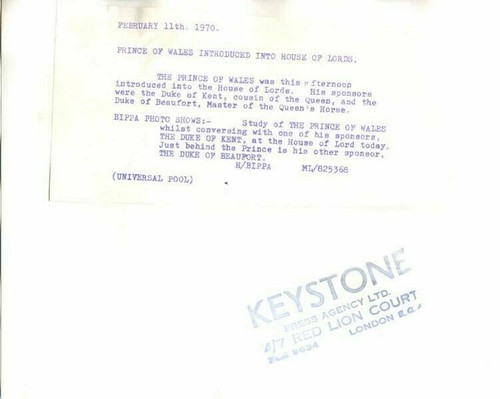 Prince Charles 1970 Duke of Kent Original Stamped 8x10 Press Photo Royal Family This item is an ORIGINAL 8x10 photo from the historic archives of Silver Screen Mementos. This original photograph was made in the actual year the film, television show or event was produced. The movie studios produced publicity photographs for distribution to the press, photo agencies and publicity departments to advertise the film/tv show or event. Very often original photos have press release information on the reverse of the photo - movie credits, description of the scene, event and people involved. This is a historic piece of cinema art and is being offered from one collector to another, no rights given or implied. Silver Screen are gradually releasing thousands of Original Photographs, Transparencies, Negatives, Lobby Cards, Posters, Magazines and other memorabilia from our historic archive. Powered by SixBit's eCommerce Solution Listing and template services provided by inkFrog