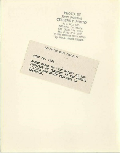 Sammy Hagar Van Halen frontman 1989 Candid Stamped 7x9 Press Photo Near Mint This is an Original vintage photograph from the year of the concert, photo shoot or event measuring approximately 8x10 inches (20x25 cm) unless otherwise stated. Many Original vintage photographs carry the agency or photographer stamp on the back. This is a rare collectors item being offered from one collector to another, no nights given or implied. Silver Screen are gradually releasing thousands of Original Photographs, Transparencies, Negatives, Lobby Cards, Posters, Magazines and other memorabilia from our historic archive. Powered by SixBit's eCommerce Solution Listing and template services provided by inkFrog