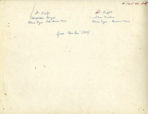 Ben Hur Charlton Heston Stephen Boyd toasting Vintage Original 11x14 Photographin VG Condition This item is a Vintage Original Oversized Silver Gelatin photograph from the historic archives of Silver Screen Mementos. This photograph also includes a protective clear rigid archival TOP LOADER photo holder. We have a huge collection of original vintage oversized photographs that were produced by the photographer or photo agency with most having the photographer/agency stamp on the back and many with snipe detailing information about the shoot or subject. These are extremely rare collectors items and will be shipped securely in protective archival top loader holder and strong packaging to ensure safe delivery. This is a historic piece of photographic art and is being offered from one collector to another, no rights given or implied. Silver Screen are gradually releasing thousands of Original Photographs, Transparencies, Negatives, Lobby Cards, Posters, Magazines and other memorabilia from our historic archive. Powered by SixBit's eCommerce Solution Listing and template services provided by inkFrog
