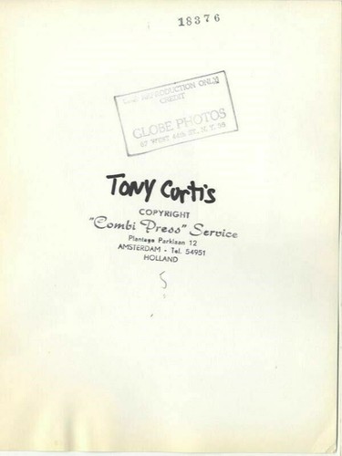 Tony Curtis Barechested Candid 1960's Stamped Vintage original Photograph VG/Near Mint This item is an ORIGINAL 8x10 photo from the historic archives of Silver Screen Mementos. This original photograph was made in the actual year the film, television show or event was produced. The movie studios produced publicity photographs for distribution to the press, photo agencies and publicity departments to advertise the film/tv show or event. Very often original photos have press release information on the reverse of the photo - movie credits, description of the scene, event and people involved. This is a historic piece of cinema art and is being offered from one collector to another, no rights given or implied. Silver Screen are gradually releasing thousands of Original Photographs, Transparencies, Negatives, Lobby Cards, Posters, Magazines and other memorabilia from our historic archive. Powered by SixBit's eCommerce Solution Listing and template services provided by inkFrog
