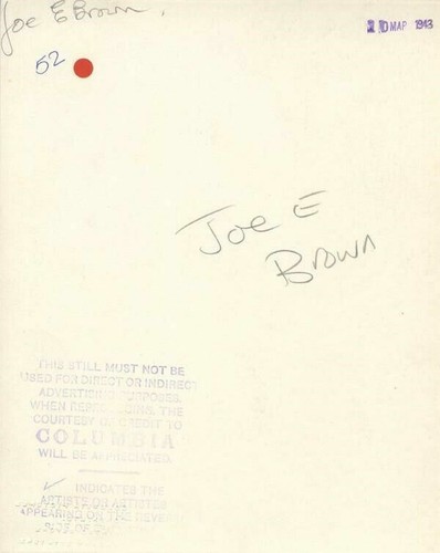 Joe E. Brown Classic Comedian Double Weight Columbia Embossed Stamped 8x10 inch approx Photo 1943 This item is an ORIGINAL 8x10 photo from the historic archives of Silver Screen Mementos. This original photograph was made in the actual year the film, television show or event was produced. The movie studios produced publicity photographs for distribution to the press, photo agencies and publicity departments to advertise the film/tv show or event. Very often original photos have press release information on the reverse of the photo - movie credits, description of the scene, event and people involved. This is a historic piece of cinema art and is being offered from one collector to another, no rights given or implied. Silver Screen are gradually releasing thousands of Original Photographs, Transparencies, Negatives, Lobby Cards, Posters, Magazines and other memorabilia from our historic archive. Powered by SixBit's eCommerce Solution Listing and template services provided by inkFrog