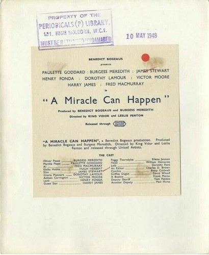 James Stewart 1948 A Miracle Can Happen Original 8x10 Photo Studio Portrait VG Condition This item is an ORIGINAL 8x10 photo from the historic archives of Silver Screen Mementos. This original photograph was made in the actual year the film, television show or event was produced. The movie studios produced publicity photographs for distribution to the press, photo agencies and publicity departments to advertise the film/tv show or event. Very often original photos have press release information on the reverse of the photo - movie credits, description of the scene, event and people involved. This is a historic piece of cinema art and is being offered from one collector to another, no rights given or implied. Silver Screen are gradually releasing thousands of Original Photographs, Transparencies, Negatives, Lobby Cards, Posters, Magazines and other memorabilia from our historic archive. Powered by SixBit's eCommerce Solution Listing and template services provided by inkFrog