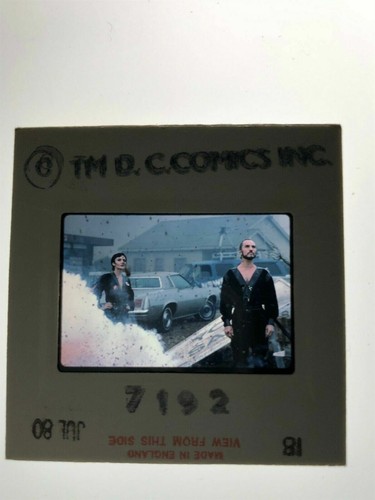 Superman 2 DC Comics Terence Stamp, Sarah Douglas near explosion Original 35mm Transparency Stamped Mount 1980 This is an Original studio or photographer's 35 mm color slide transparency from our historic archive. This is a real collector's item and would make superb quality photographs or prints. This would also be a great addition to any collection or image archive. This original negative color slide transparency is in Excellent condition. This collector's item is being sold from one collector to another, no rights are given or implied. Silver Screen Mementos are gradually releasing from their vast archives thousands of original photographs, transparencies, negatives, slides, lobby cards and other movie or television memorabilia. Powered by SixBit's eCommerce Solution Listing and template services provided by inkFrog